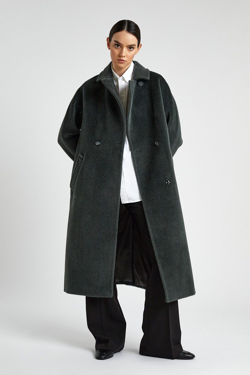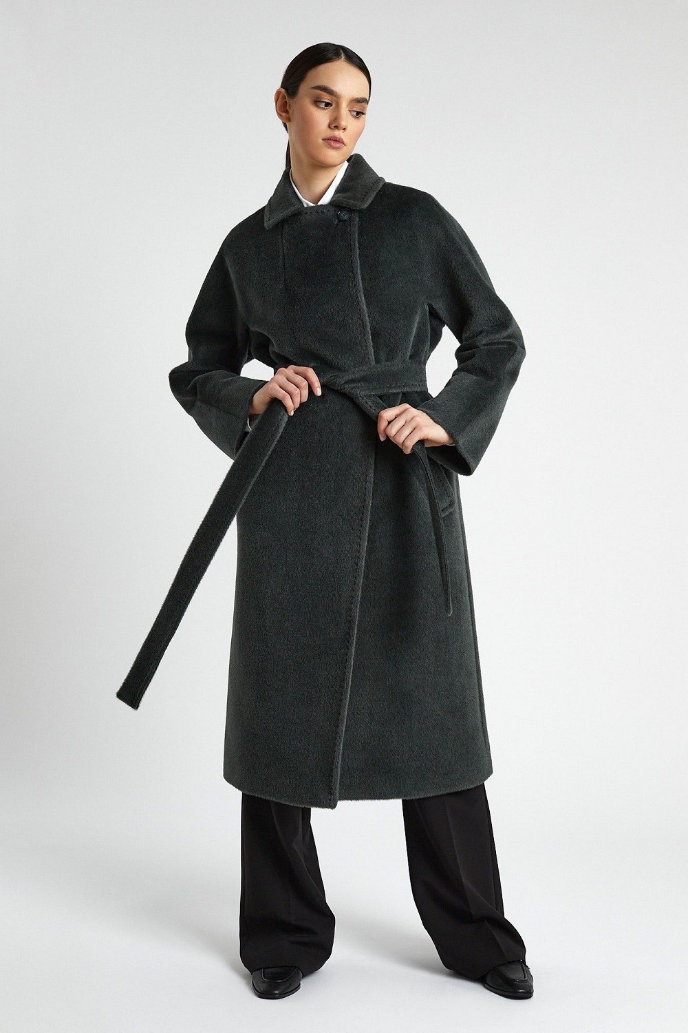Просто и роскошно — это о двубортном пальто из шерсти альпака сури и бэби сури с добавлением овечьей шерсти. Теплый износостойкий материал надолго сохраняет форму и безупречный вид. Выверенный крой и превосходное качество швов подчеркивают статусность изделия. Элегантная длина 115 см. Отложной воротник — можно застегнуться полностью, а можно оставить лацканы разложенными. Детали: глубокие прорезные карманы, шлица по спинке, пояс в тон. Подкладка из вискозы не электризуется и приятна к телу. Длина пальто 115 см. Состав верха: Бэби сури альпака - 35%; Супер сури альпака - 35%; Натуральная шерсть - 30%. В зависимости от цвета состав ткани может варьироваться. Подкладка: Вискоза - 100%.