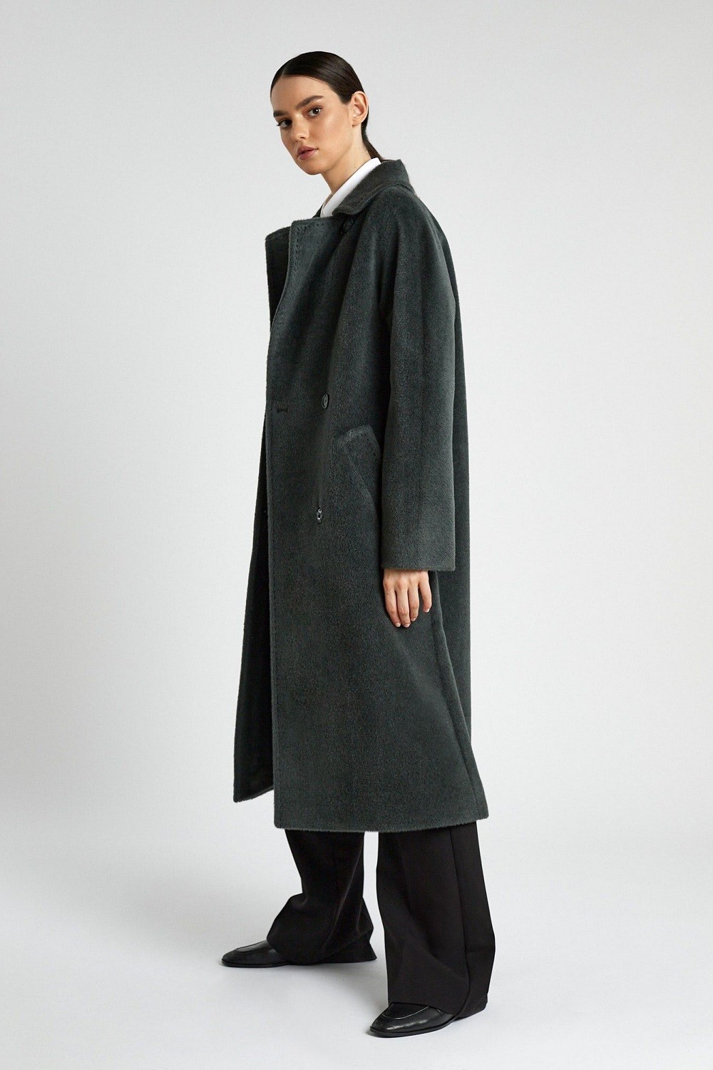 Просто и роскошно — это о двубортном пальто из шерсти альпака сури и бэби сури с добавлением овечьей шерсти. Теплый износостойкий материал надолго сохраняет форму и безупречный вид. Выверенный крой и превосходное качество швов подчеркивают статусность изделия. Элегантная длина 115 см. Отложной воротник — можно застегнуться полностью, а можно оставить лацканы разложенными. Детали: глубокие прорезные карманы, шлица по спинке, пояс в тон. Подкладка из вискозы не электризуется и приятна к телу. Длина пальто 115 см. Состав верха: Бэби сури альпака - 35%; Супер сури альпака - 35%; Натуральная шерсть - 30%. В зависимости от цвета состав ткани может варьироваться. Подкладка: Вискоза - 100%.