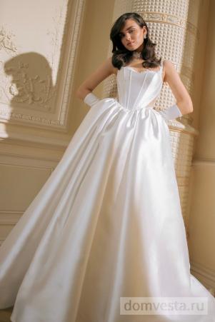 Обворожительное свадебное платье, созданное для невест, желающих получить образ настоящей принцессы. Модель выполнена в классическом A-силуэтном крое и полностью расшита потрясающим 3д кружевом и сверкающим декором из пайеток и стекляруса. Лиф на бретелях имеет глубокий вырез в зоне декольте, визуально вытягивающий силуэт невесты. Небольшой аккуратный вырез на спине придает свадебному стилю нотку сдержанности и скромности. Длинная юбка в пол завершает всю картину роскошным длинным шлейфом. Благодаря яркому богатому декору платье не требует дополнительных аксессуаров, чтобы создать самодостаточный законченный образ.