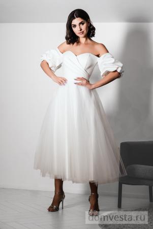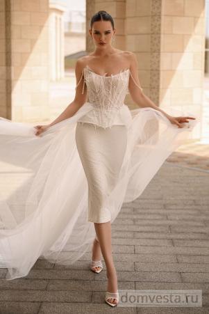Невероятно кинематографичное платье, которому позавидовали бы все пафосные красные дорожки. Модель полностью расшито изумительным кружевом, покрыта декором из бисера и стекляруса, а также задекорирована натуральным страусиным пером. Открытый лиф выгодно демонстрирует хрупкие плечи и ключицы невесты, открытая спина, дополненная шнуровкой, делает образ невесты драматичным и по-настоящему притягательным. Обволакивающая фигуру юбка с аккуратным вырезом имеет длину миди, что позволяет обладательнице платья сделать дополнительный акцент на обуви. Обращаем ваше внимание, что за модели данного бренда, начиная с 50 российского размера, осуществляется наценка +20%, а от 54 размера +30%.