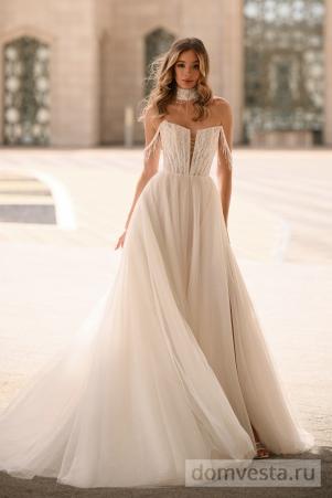 Потрясающее свадебное платье, выполненное в прямом A-силуэтном крое из нежной фатиновой ткани. Бельевой кружевной лиф подчеркивает хрупкие плечи и ключицы, создавая женственный трепетный образ. Длинная юбка, покрытая сверкающим напылением, завершается роскошным шлейфом. Платье Evnika - универсальный вариант как для летних открытых площадок, так и для помпезных величественных интерьеров усадеб и особняков. Классический дизайн модели органично смотрится с элегантными крупными серьгами, с развивающимися локонами и собранными аккуратными укладками. Обращаем ваше внимание, что за модели данного бренда, начиная с 50 российского размера, осуществляется наценка +20%, а от 54 размера +30%.