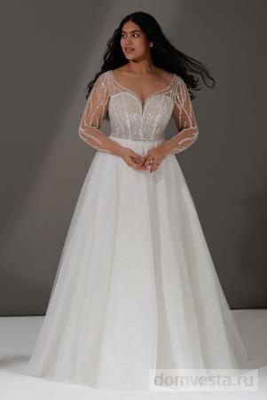 Обворожительное свадебное платье, выполненное в классическом A-силуэтном крое из нежной фатиновой ткани и кружева. Закрытый лиф модели украшен изумительными кружевными сюжетами, длинные прозрачные рукава придают образу невесты ощущение легкости и романтичности. Длинная пышная юбка в пол имеет глубокий вырез по ноге, позволяющий смелым невестам продемонстрировать стройную фигуру и свадебную обувь. Завершает картинку роскошный шлейф. Обращаем ваше внимание, что за модели данного бренда, начиная с 50 российского размера, осуществляется наценка +20%, а от 54 размера +30%.