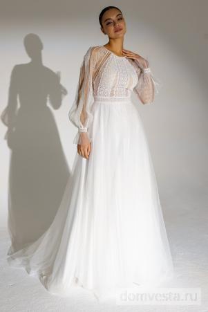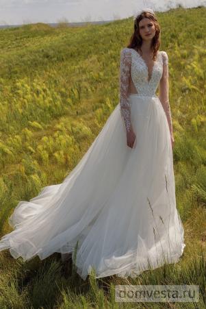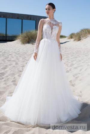 Невероятно эффектное свадебное платье, выполненное в классическом A-силуэтном крое. Закрытый лиф с длинными рукавами полностью покрыт декором из бисера и стекляруса, а также расшит кружевными узорами. Имитация глубокого V-образного выреза визуально вытягивает силуэт невесты, прозрачная сетка на спине открывает лопатки. Длинная юбка в пол покрыта сверкающим глитерным напылением и завершается роскошным шлейфом. Обильный декор платья Fikea позволяет создать завершенный свадебный образ, не прибегая к дополнительным броским аксессуарам. Обращаем ваше внимание, что за модели данного бренда, начиная с 58 российского размера, осуществляется наценка +20%.