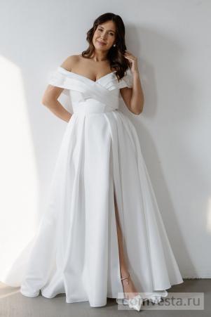 Неподражаемое свадебное платье Imperia, выполненное в A-силуэтном крое. Корсетный верх с фигурным вырезом выгодно акцентирует зону декольте, плечи и ключицы обладательницы платья. Верх платья полностью покрыт потрясающим кружевом и декором из стекляруса. Длинная юбка в пол из переливающегося атласа визуально ниспадает мягкими складками, вырез по ноге демонстрирует стройные ноги невесты. Завершает свадебный ансамбль эффектный шлейф. Прекрасным дополнение к образу будут аксессуары с оригинальным контрастным дизайном. Обращаем ваше внимание, что за модели данного бренда, начиная с 50 российского размера, осуществляется наценка +20%, а от 54 размера +30%.