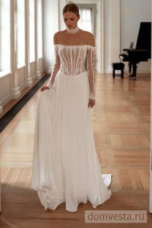 Невероятно эффектное свадебное платье A-силуэтного кроя. Закрытый лиф модели с длинными рукавами полностью покрыт изумительным кружевом ручной работы, а также задекорирован сверкающими пайетками и стеклярусом. Длинная юбка в пол дополнена глубоким вырезом по ноге, придающим нотку пикантности и шарма в свадебный образ. Завершает картинку эффектный шлейф. Яркий дизайн платья Krista уже является украшением любого торжества, усилить настроение можно при помощи оригинальных украшений в волосы и парой аккуратных сережек.  Обращаем ваше внимание, что за модели данного бренда, начиная с 58 российского размера, осуществляется наценка +20%.