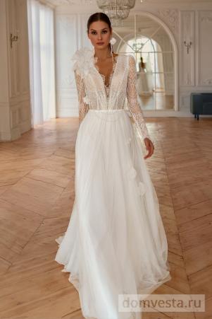 Lavri — идеальный выбор для невесты, которая стремится к безупречному стилю, сочетающему вечную классику с современными акцентами. Высокий воротник-стойка, выполненный из тончайшего кружева, создаёт образ царственной невесты, деликатно обрамляя шею и придавая осанке особую стать. Изящный кружевной лиф с длинными рукавами расшит утончёнными узорами, которые притягивают взгляд и подчёркивают хрупкость силуэта. Контрастом к воздушному кружевному верху выступает пышная юбка А-силуэта из благородного атласа. Её безупречный крой и глубокие складки создают величественный объём, а благородный блеск ткани окутывает невесту аурой торжественности. Скрытые карманы добавляют практичности, а высокий разрез на юбке, деликатно открывающий ногу, привносит в образ нотку современной дерзости и динамики. Спинка платья выполнена в лаконичном стиле, завершая этот гармоничный ансамбль. Обращаем ваше внимание, что за модели данного бренда, начиная с 50 российского размера, осуществляется наценка +20%, а от 54 размера +30%.