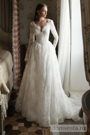 Невероятно эффектное свадебное платье, выполненное в классическом A-силуэтном крое из кружева и органзы. Закрытый лиф с длинными рукавами полностью покрыт изумительными кружевными сюжетами. Длинная юбка в пол завершается эффектным шлейфом. Модель  полностью самодостаточна за счет обильного кружевного декора и создает завершенный цельный образ. Достаточно пары сережек, чтобы быть на высоте. Платье прекрасно подходит для любого свадебного сезона и широкого спектра стилистик. Обращаем ваше внимание, что за модели данного бренда, начиная с 50 российского размера, осуществляется наценка +20%, а от 54 размера +30%.