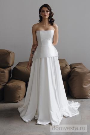 Корсетный лиф с глубоким V-образным вырезом и полупрозрачной вставкой деликатно подчёркивает линию декольте, создавая интригующий и соблазнительный акцент. Его поверхность полностью усыпана мерцающим бисером и вышивкой. Особый шарм платью придают ниспадающие жемчужные нити, образующие воздушные бретели, которые изящно обрамляют плечи, добавляя образу динамики и хрупкости. Пышная юбка А-силуэта, выполненная из многослойного фатина с нежным мерцанием, создаёт ощущение невесомости и грации. Высокий разрез на юбке, деликатно открывающий стройные ноги, привносит в образ нотку современной дерзости и динамики, сохраняя при этом общую элегантность. Дополнить свадебный визуал можно с помощью броского активного чокера, стоимостью 11 000 рублей. Обращаем ваше внимание, что за модели данного бренда, начиная с 50 российского размера, осуществляется наценка +20%, а от 54 размера +30%.