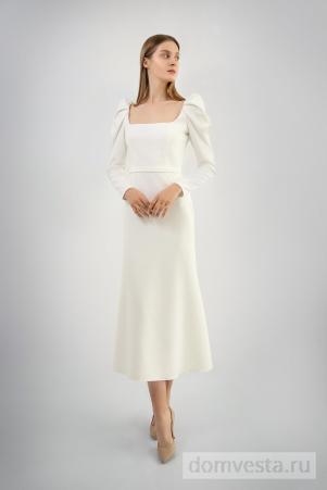Великолепное свадебное платье, выполненное в прямом облегающем крое из крепа. Верх имеет благородный вырез каре, который в сочетании с длинными рукавами-фонариками создает скромный сдержанный образ. Нотку пикантности и шарма в свадебный ансамбль добавляет небольшой вырез, открывающий спину. Длина юбки делает яркую отсылку к тематике ретро, такой формат позволяет невесте поэкспериментировать со свадебной обувью, которая всегда будет на виду. В качестве финального штриха можно использовать изысканные украшения на шею и серьги, которые будут поддерживать винтажное настроение. Обращаем ваше внимание, что за модели данного бренда, начиная с 50 российского размера  до 54, осуществляется наценка +20%.