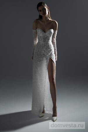 Это утонченное свадебное платье в силуэте «рыбка» создано для тех, кто мечтает о роскошном образе. Корсетный лиф без бретелей украшен сверкающим декором из тысяч блестящих пайеток, которые переливаются при каждом движении. Плавно облегающая юбка изысканно подчеркивает фигуру, переходя в небольшой шлейф, добавляющий нотку величия. Открытые плечи создают гармоничный акцент, делая платье идеальным выбором для вечерней церемонии или торжества в романтичной атмосфере. Обращаем ваше внимание, что за модели данного бренда, начиная с 48 российского размера, осуществляется наценка +10%, а от 52 размера +20%.