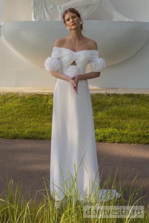 Это стильное свадебное платье привлекает внимание своей смелостью и элегантностью. Лиф, выполненный без бретелей, подчеркивает изысканность плеч и декольте, создавая утонченный и женственный образ. Широкая юбка с динамичным кроем струится мягкими складками, при этом оригинальные элементы драпировки на передней части придают платью игривости и смелости. Эффектный разрез на юбке добавляет нотки дерзости и современности, в то время как длина шлейфа завершает образ величием и грацией. Это платье идеально для невесты, которая хочет подчеркнуть свою индивидуальность и создать по-настоящему запоминающийся образ для самого важного дня. Обращаем ваше внимание, что за модели данного бренда, начиная с 48 российского размера, осуществляется наценка +10%, а от 52 размера +20%.