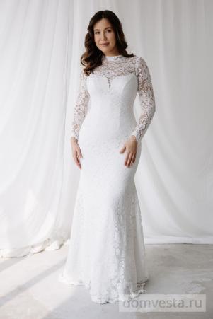 Изящное свадебное платье, сочетающее в себе утончённую прозрачность кружева и гладкий атлас. Верх платья украшен потрясающим кружевом с мягким блеском пайеток и изящными бусинами, а аккуратные жемчужные нити плавно спускаются по плечам, добавляя благородный акцент. Длинные облегающие рукава и высокий круглый вырез подчёркивают шею и руки, придавая образу лёгкость и сдержанную элегантность. Широкий пояс с драпировкой утягивает силуэт, формируя изящный узелок сбоку и визуально стройнит фигуру. Прямая цельнокроеная юбка из плотного атласа мягко облегает бедра и слегка расширяется к низу, обеспечивая свободу движений и изысканный силуэт. Обращаем ваше внимание, что за модели данного бренда, начиная с 58 российского размера, осуществляется наценка +20%.