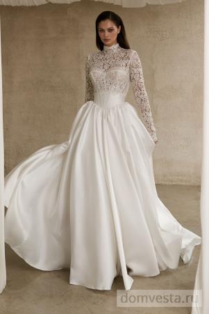 Платье Silva — это воплощение легкости, романтики и нежной элегантности, созданное для невесты, которая мечтает о воздушном и изысканном образе. Модель выполнена в А-образном силуэте, который деликатно подчеркивает талию и свободно ниспадает к низу. Лиф платья с закрытой спиной имеет глубокий V-образный вырез, украшенный тонким кружевом с флористическими мотивами. Длинные кружевные рукава добавляют аристократичности и утонченности. Декоративные элементы в виде объемных цветов на одном плече создают уникальный и запоминающийся акцент. Многослойная юбка из легкого фатина свободно ниспадает до самого пола. Обращаем ваше внимание, что за модели данного бренда, начиная с 50 российского размера, осуществляется наценка +20%, а от 54 размера +30%.