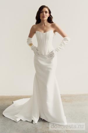Великолепное свадебное платье, выполненное в прямом облегающем крое из крепа. Открытый лиф в сочетании со спущенными длинными рукавами, задекорированными натуральным страусиным пером, выгодно акцентируют зону ключиц и плечи невесты, придавая свадебное образу грациозный притягательным вид. Открытые лопатки вносят настроение романтики. Обволакивающая фигуру длинная юбка в пол завершает свадебный ансамбль роскошным шлейфом. Для усиления настроения можно использовать массивные аксессуары на шею и подходящие по стилю серьги.  Обращаем ваше внимание, что за модели данного бренда, начиная с 50 российского размера, осуществляется наценка +10%, а от 54 размера +20%.