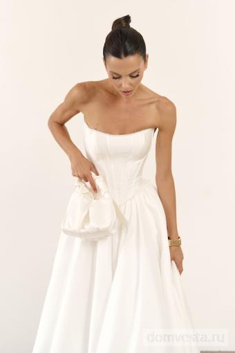 Потрясающее свадебное платье, выполнено в облегающем силуэте рыбка. Модель полностью расшита сверкающим декором из бисера, стекляруса и крупных бусин. Открытый лиф в бельевом стиле имеет спущенные длинные рукава, выгодно демонстрирующие открытые плечи невесты, зона декольте украшена декоративными нитями. Юбка подчеркивает стройность фигуры невесты, завершая свадебный ансамбль аккуратным небольшим шлейфом. Богатый декор платья Vetta благодаря богатому декору не нуждается в активных дополнительных аксессуарах, чтобы создать завершенную картинку. Платье можно дополнить украшением, стоимость которого 17 400 рублей. Обращаем ваше внимание, что за модели данного бренда, начиная с 50 российского размера, осуществляется наценка +20%, а от 54 размера +30%.