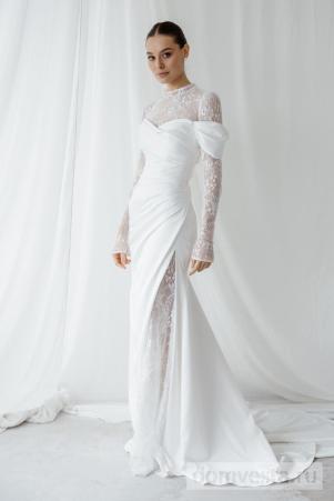 Эффектное свадебное платье, выполненное в прямом крое из ткани микадо. Открытый лиф с мягкой драпировкой обеспечивает зону декольте и плечи невесты максимумом внимания, открытые лопатки добавляют свадебному стилю романтическое нежное ощущение. Длинная юбка в пол обволакивает фигуру и завершается аккуратным шлейфом. Дополнить свадебный образ можно длинным невесомым кейпом, переходящим в шлейф. Платье прекрасно подходит для любого свадебного сезона и не привязано к определенной стилистической идее. На сайте указана стоимость платья без кейпа. Кейп можно приобрести отдельно за 12700 рублей. Обращаем ваше внимание, что за модели данного бренда, начиная с 50 российского размера, осуществляется наценка +10%, а от 54 размера +20%